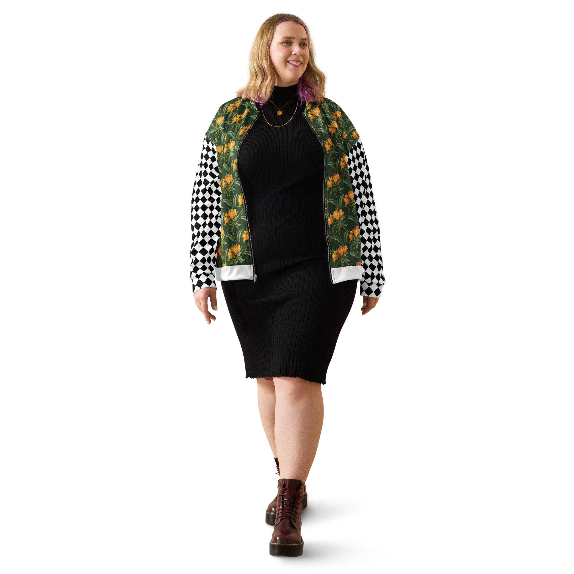 Add some spice to your wardrobe with this vibrant all-over print bomber jacket. Wear over a basic t-shirt, or layer over a warm hoodie, it will look stunning either way. With a brushed fleece lining on the inside, and a relaxed unisex fit, this bomber jacket is the stuff of dreams, so act fast!