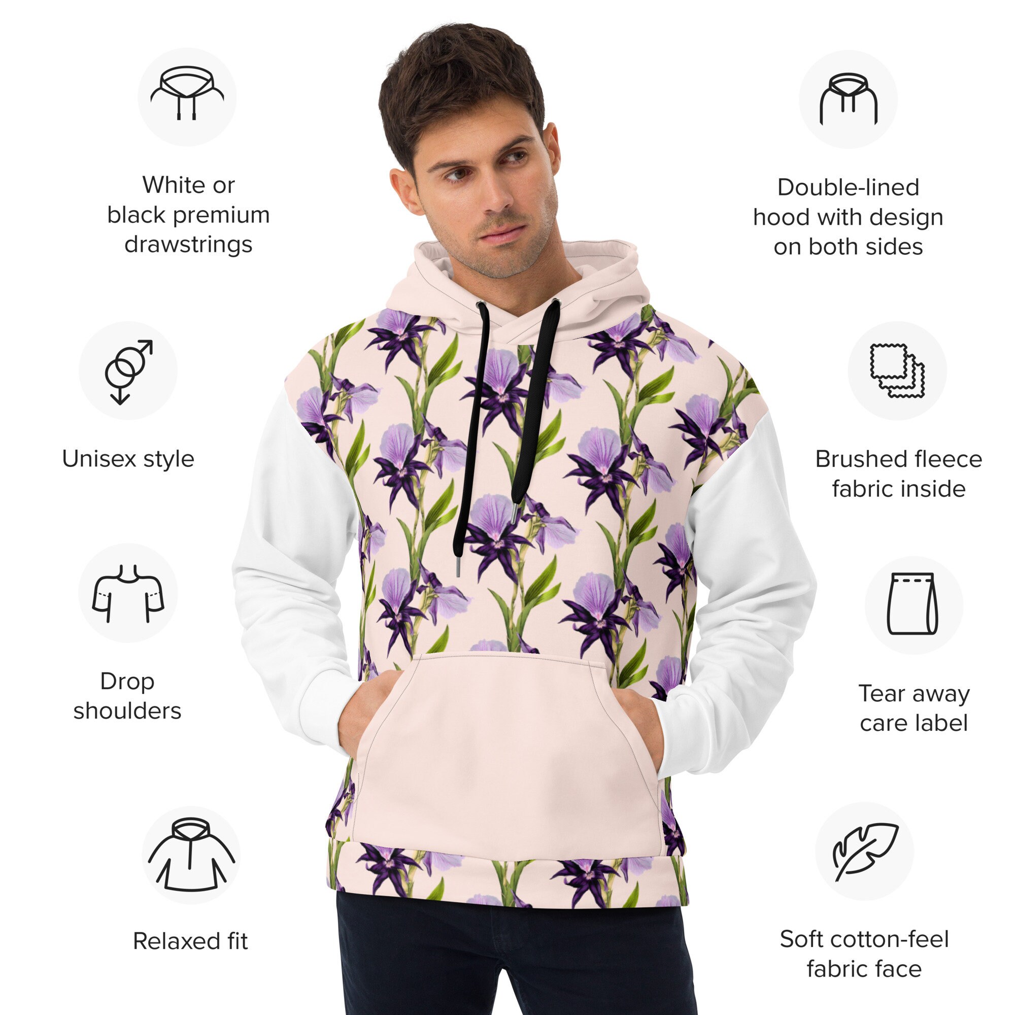 This cozy unisex hoodie has a soft exterior with a vibrant print and an even softer brushed fleece interior. The hoodie has a relaxed fit and is perfect for wrapping up around you on a chilly evening.